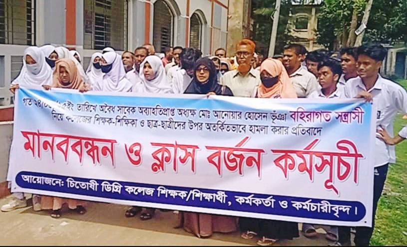 শাহরাস্তিতে চিতোষী ডিগ্রি কলেজে সংঘর্ষের ঘটনায় পাল্টাপাল্টি অভিযোগ, শিক্ষার্থীদের ক্লাস বর্জন ও মানববন্ধন